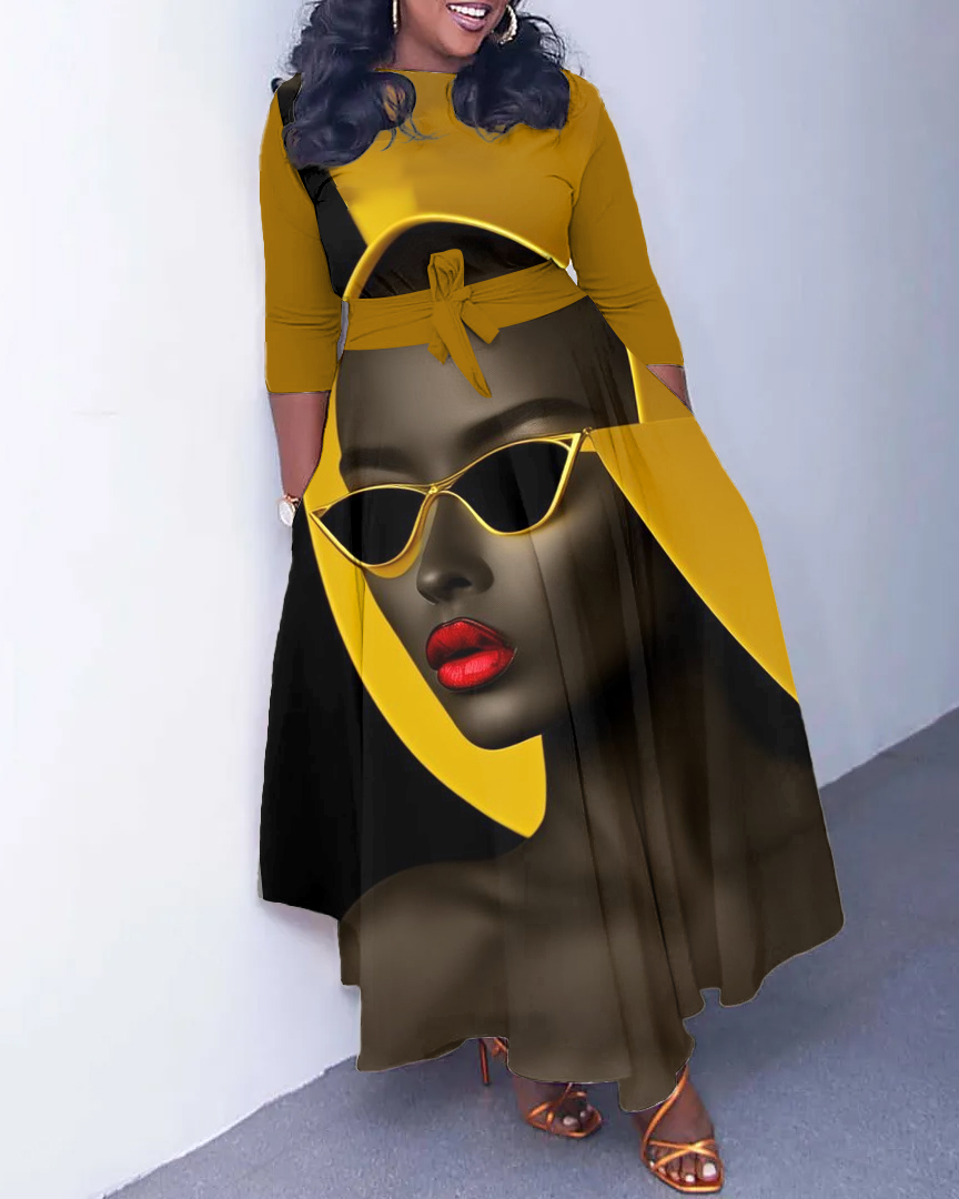 Black Woman In Sunglasses Long Sleeve Pockets Maxi Dress