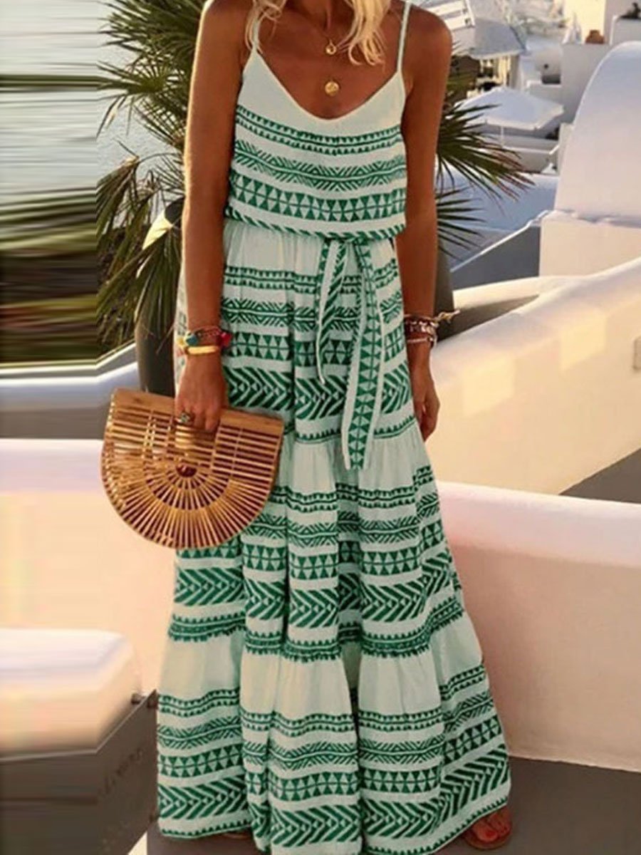 Bohemian V-neck Printed Beach Slip Dress