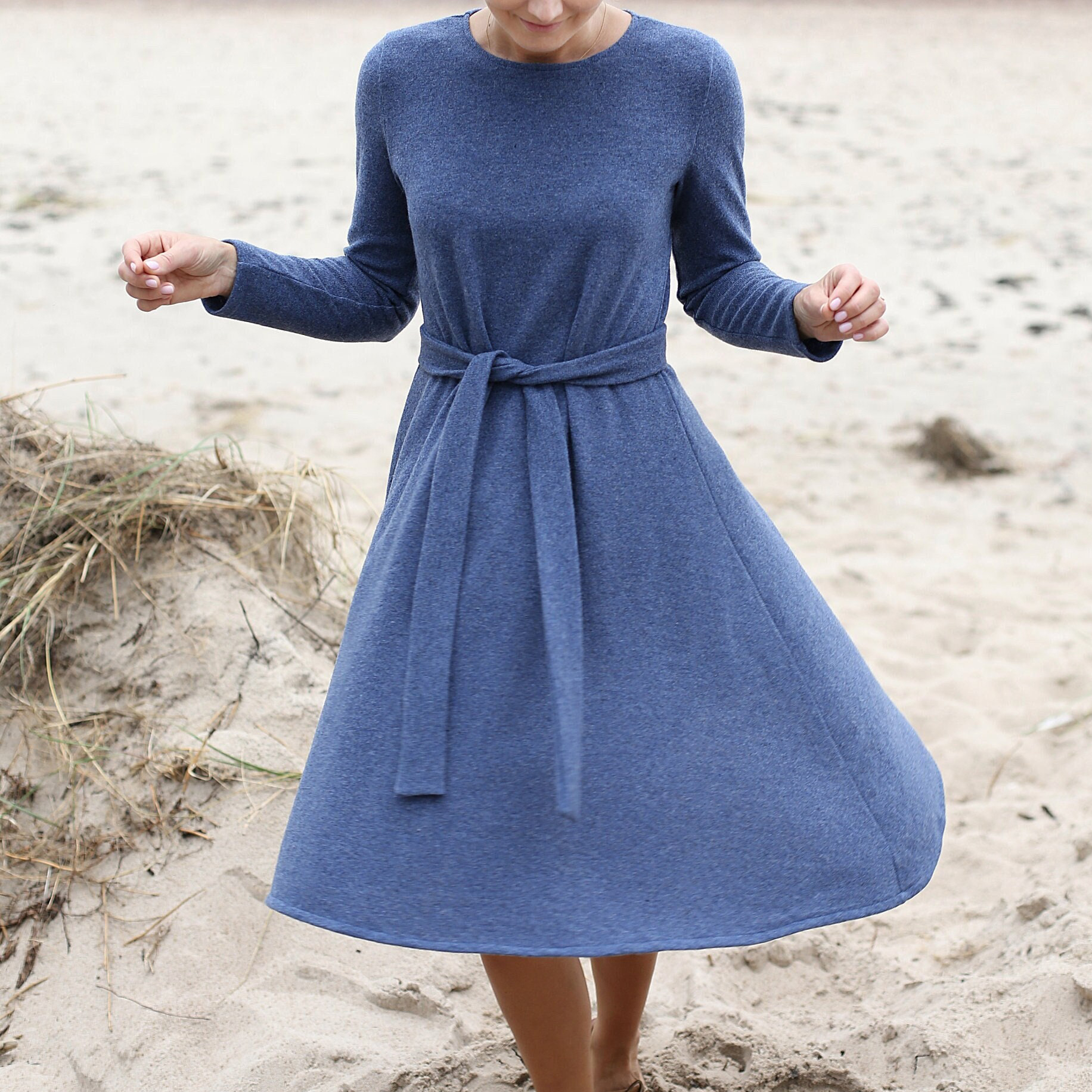 Elegant A-Line With Belt Knitting Wool Midi Dress