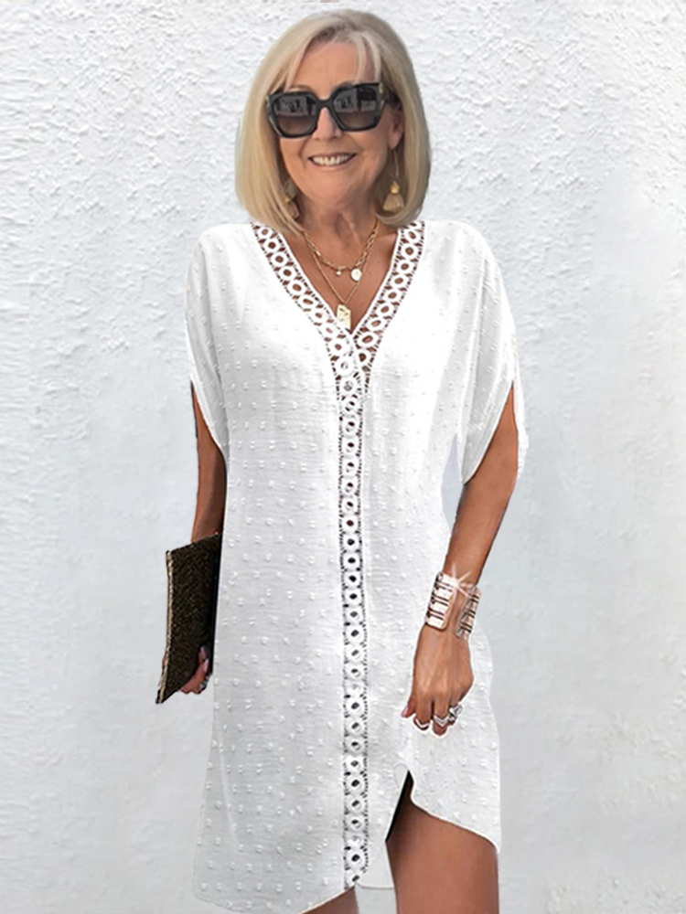 Fashion V-neck Pleated Batwing Sleeve Dress