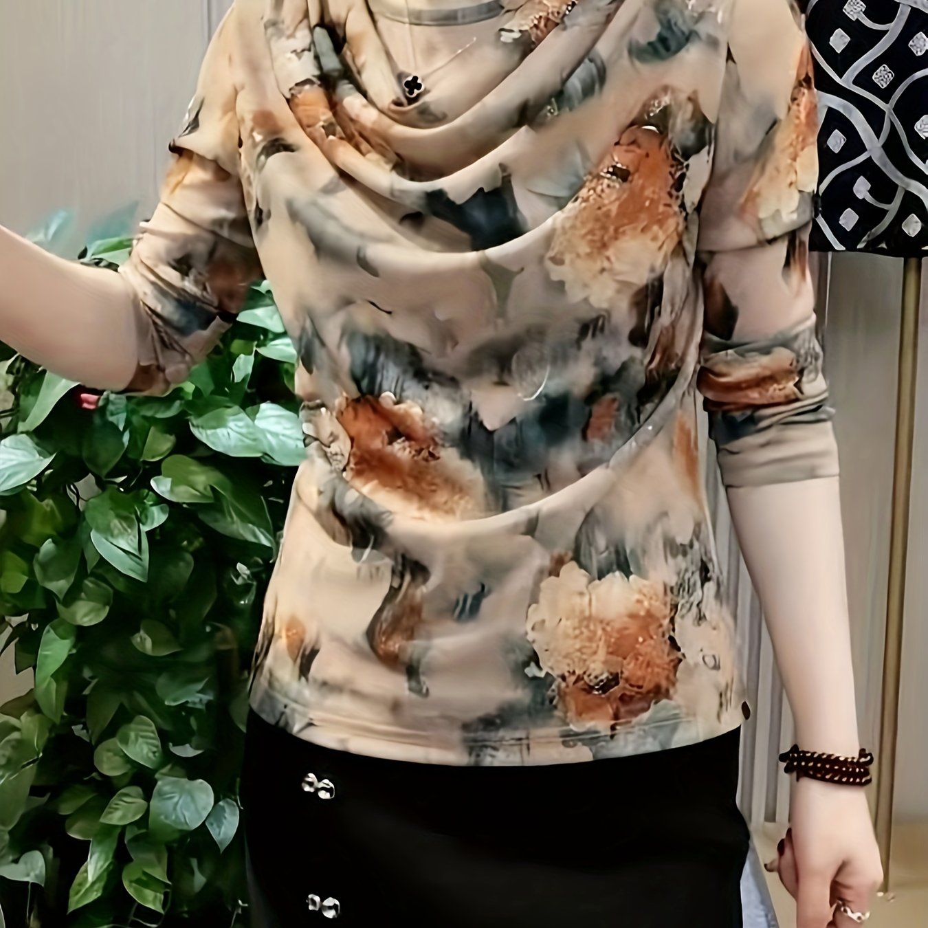 Flirty Floral Print Cowl Neck Blouse - Stylish & Versatile Long Sleeve Top for Spring to Fall - A Must-Have for Fashion-Forward Womens Wardrobe
