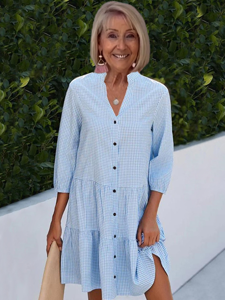 Half Sleeve Plaid Stand Collar Shirt Dress Women