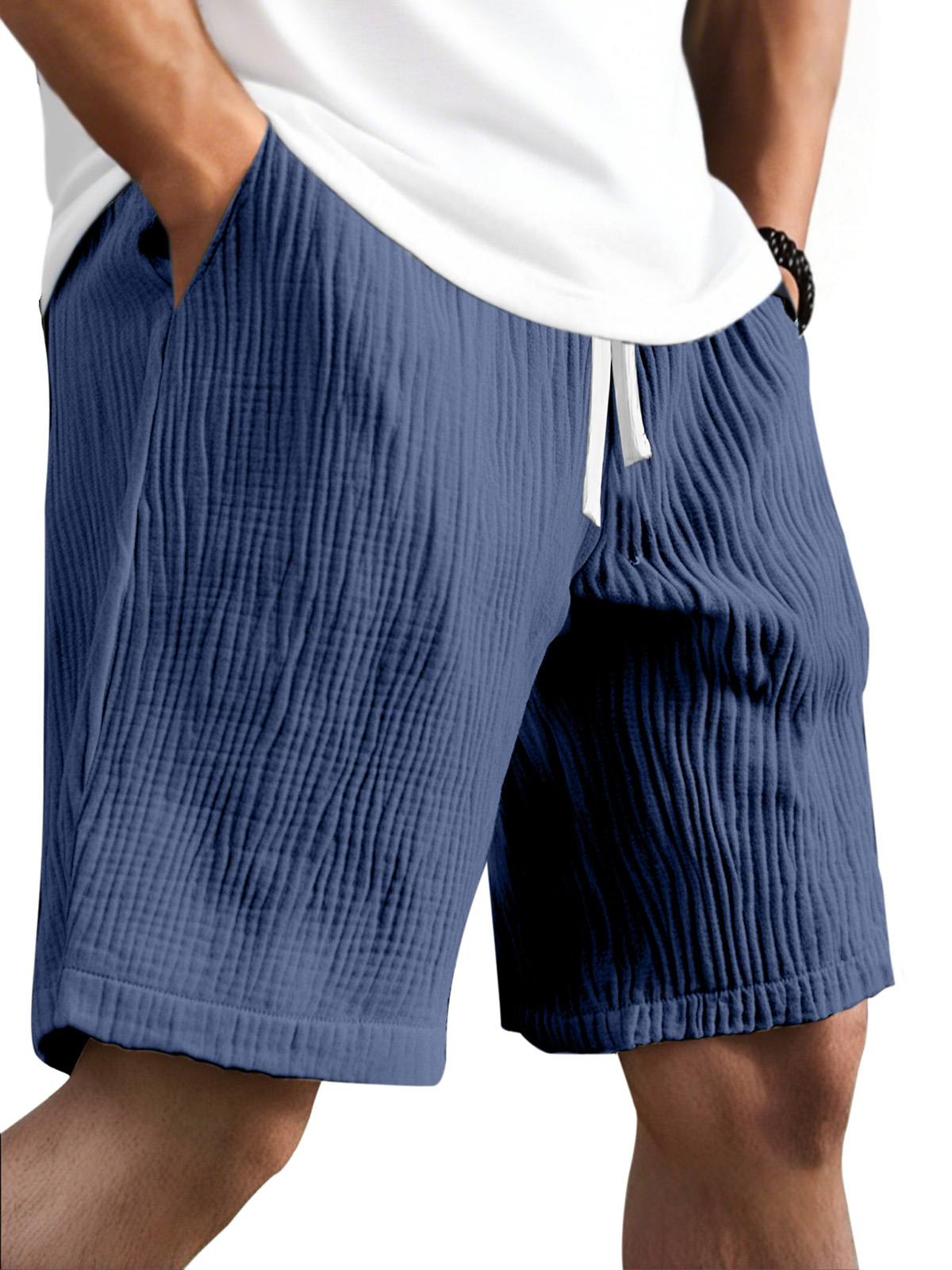 Men's casual solid color breathable pleated texture loose shorts