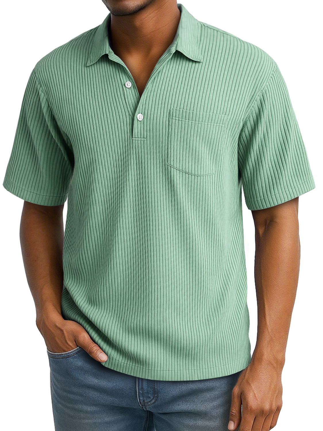 Men's Daily Lapel Pocket Ribbed Short-sleeved Polo Shirt
