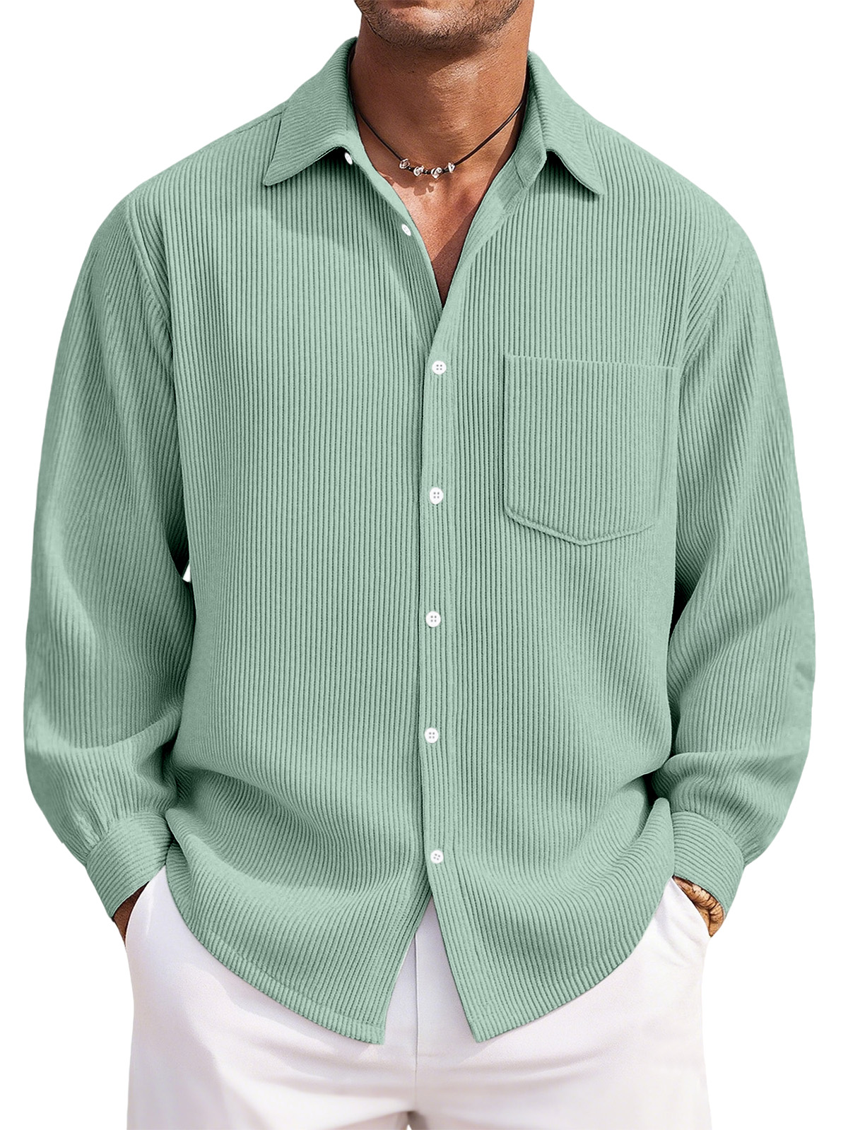 Men's Everyday Casual Solid Color Corduroy Button Lapel Long Sleeve Shirt