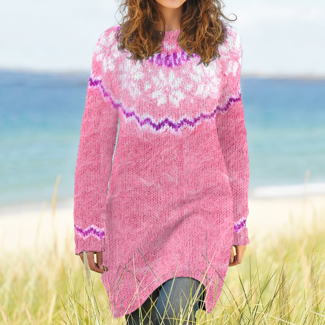 Pink Cancer Awareness Snowflake Jacquard Wool Knit Dress