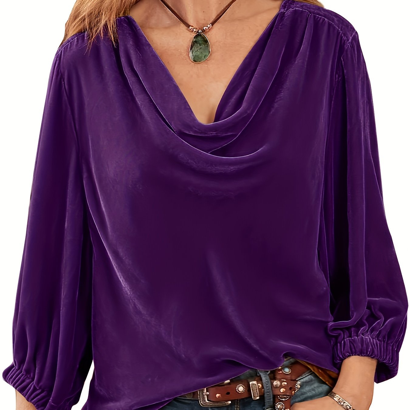 Plus Size Solid Cowl Neck Top, Elegant 3\u002F4 Sleeve Top For Spring & Fall, Women's Plus Size Clothing