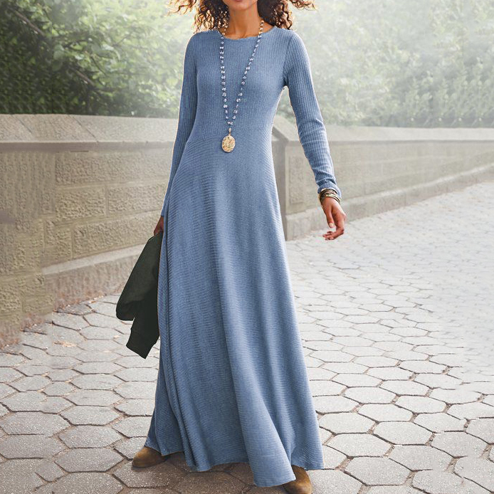 Retro Solid Color Wool Maxi Dress