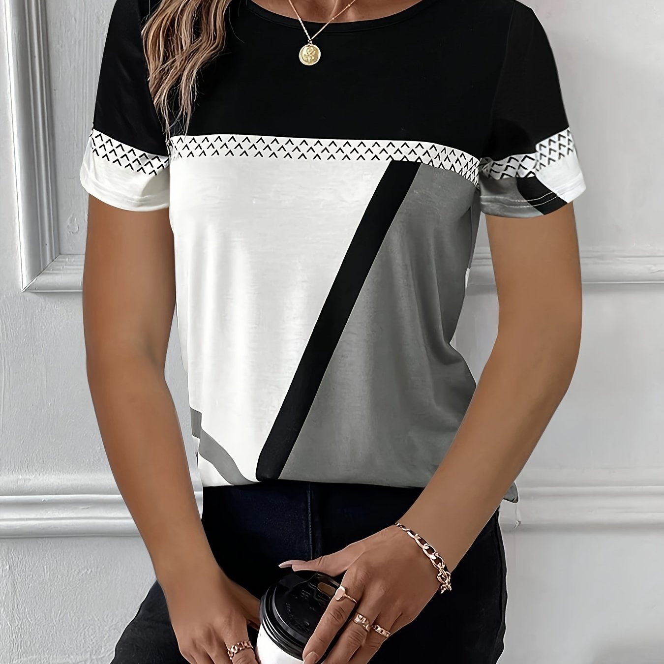 Trendy Color Block Womens Tee - Soft, Breathable Crew Neck Top for Casual Spring & Summer Wear