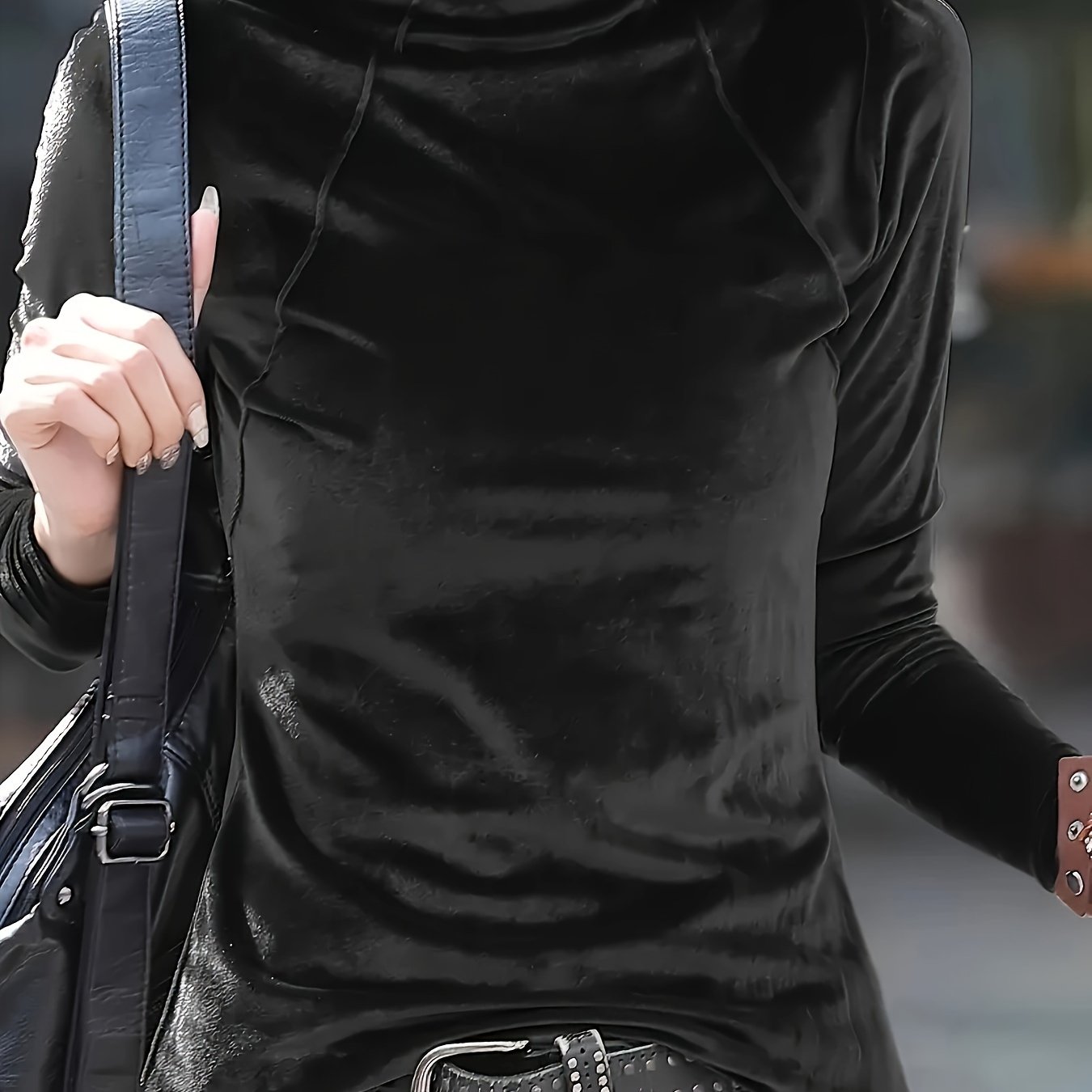 Vibrant Solid Color Velvet T-Shirt - Women's Elegant Long Sleeve Slim Fit T-Shirts for Spring & Fall - Soft, Comfortable, and Chic Clothing for Ladies
