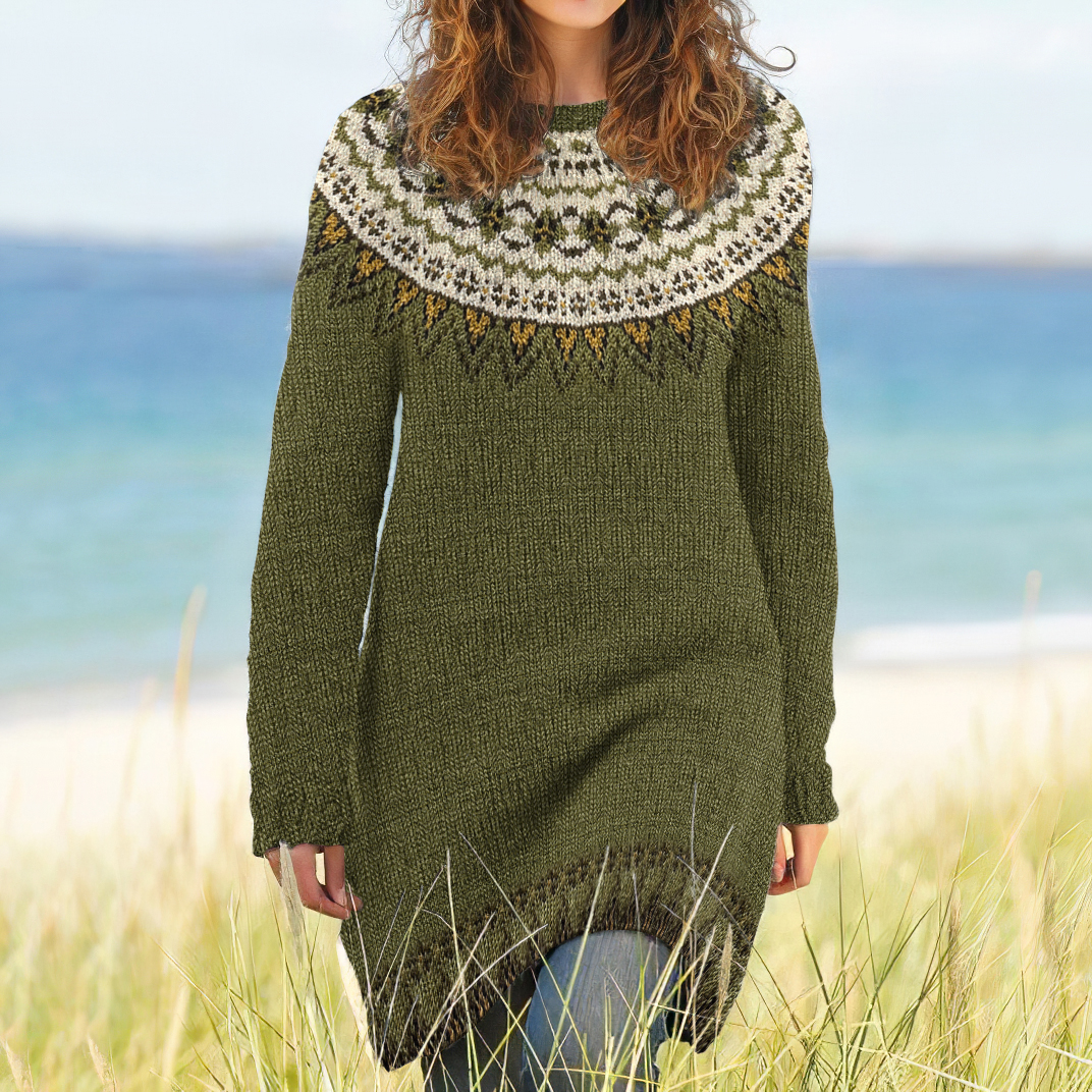 Vintage Fairman Island Tribal Art Pattern Cozy Sweater Dress