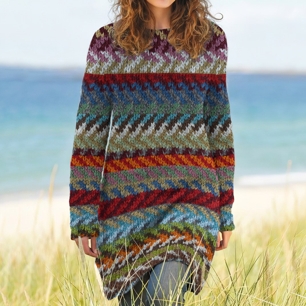 Vintage Fairman Island Tribal Art Pattern Cozy Sweater Dress