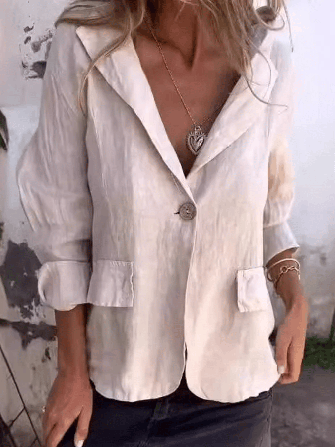 Women's Artistic Loose Solid Color Buttoned Cotton And Linen Suit Jacket