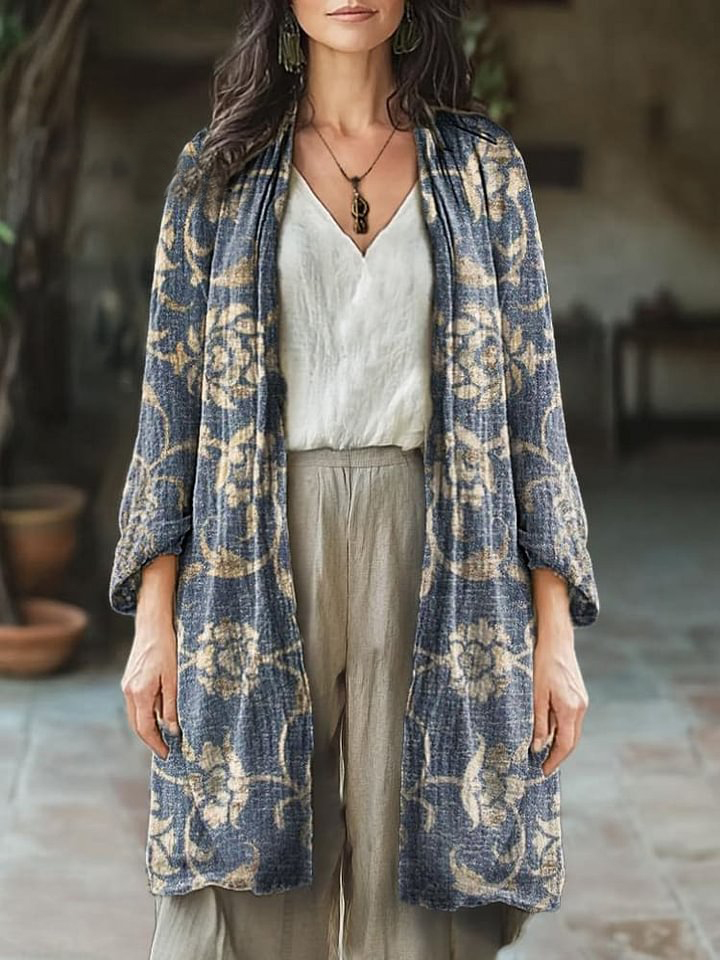 Women's Bohemian Floral Art Print Casual Comfort Cotton Cardigan