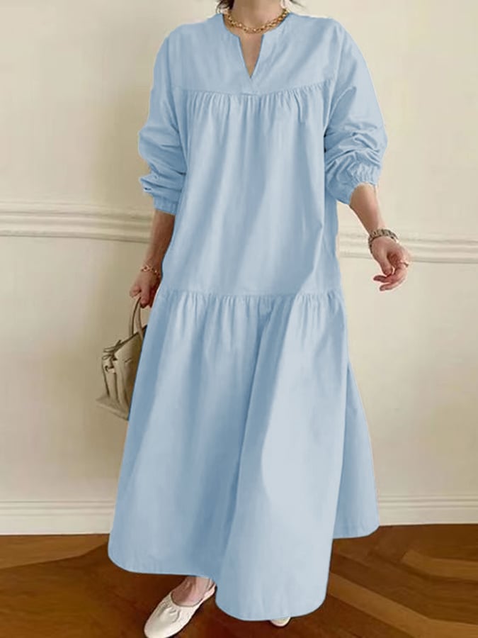 Women's Casual Loose Pleated Autumn Fragrant Linen Long Swing Dress