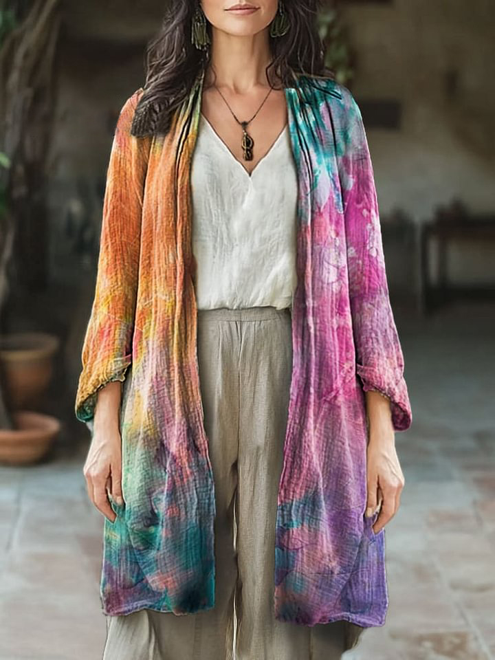 Women's Colorful Tie-Dye Print Casual Comfort Cotton Cardigan