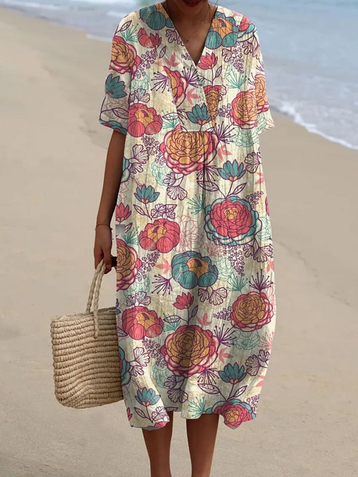 Women's Floral Art Print Flowy Dress