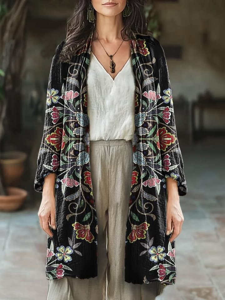 Women's Folk Symmetrical Floral Print Casual Comfort Cotton Cardigan