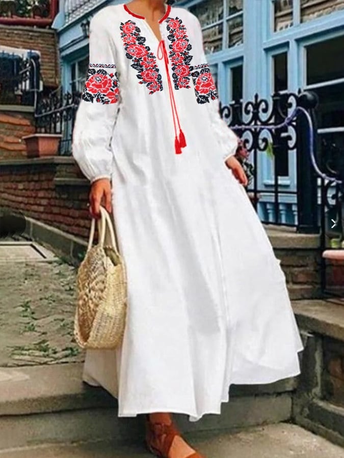 Women's Retro Ethnic Print Loose Casual Maxi Dress