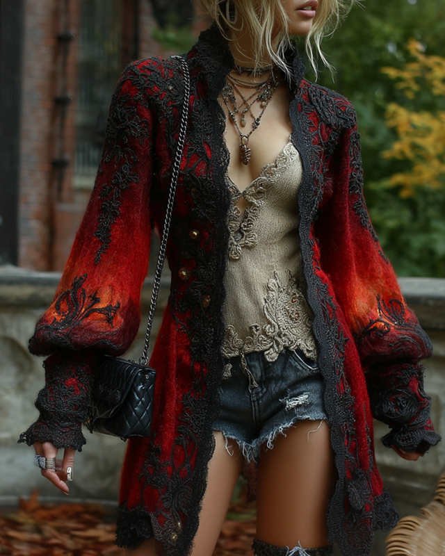 Women's Halloween themed embroidered lace cardigan 967d