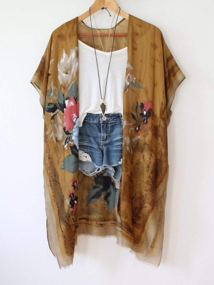 Women's Traditional Floral Print Vintage Kimono Cardigan