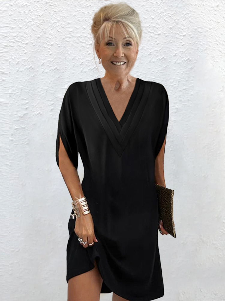 Women's V-neck Pleated Batwing Sleeve Dress