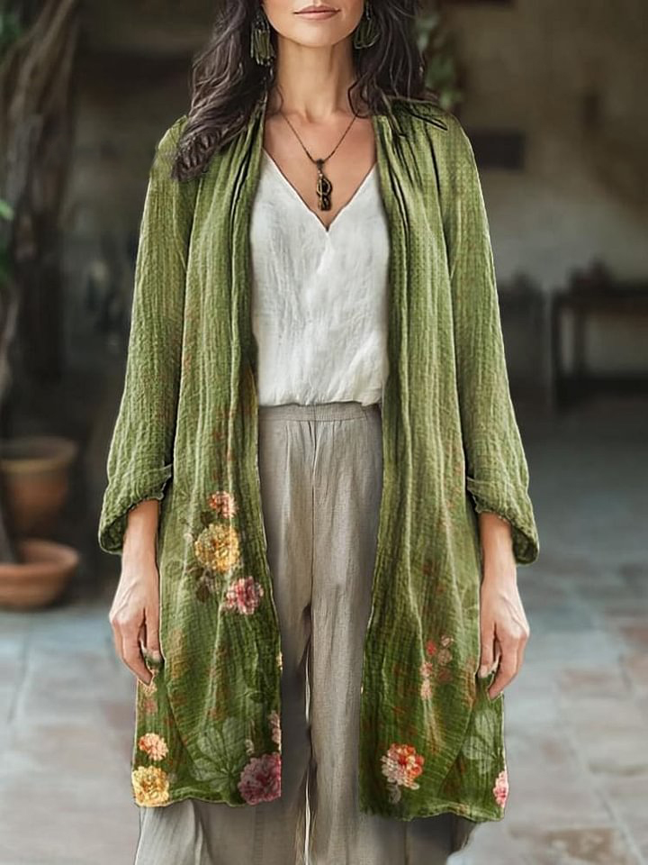 Women's Vintage Floral Art Print Casual Comfort Cotton Cardigan